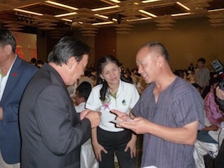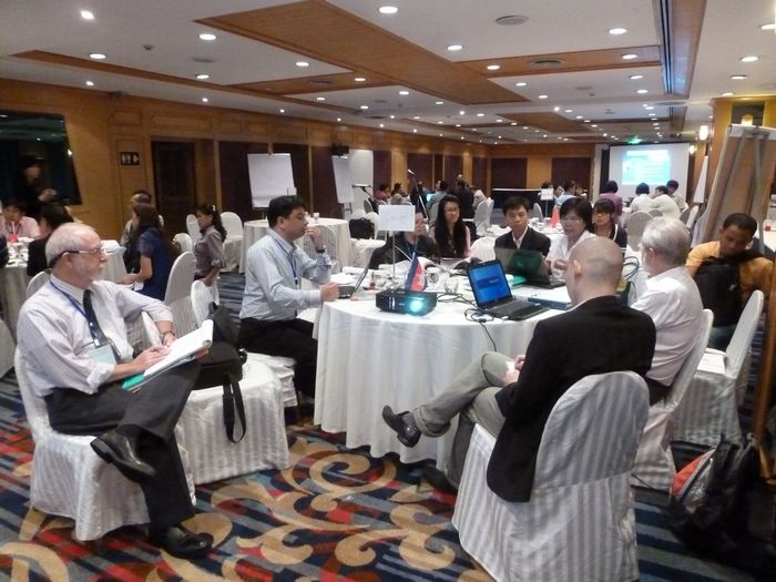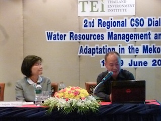 湄公河流经中国、老挝、缅甸、泰国、柬埔寨和越南六国,六国不仅共同分享这一区域的水资源,同时面临水资源管理和气候变化适应的严峻现实,为此水资源管理和气候变化适应受到六个国家政府的高度重。近年来,这一问题引起了各国的公民社会组织的积极参与和关注,最近在曼谷召开的“第二届湄公河流域水资源管理气候变化适应公民社会组织对话会”(2nd Regional CSOs Dialogue on Water Resources Management and Climate Change Adaptation in the Mekong Basin) 是各国公民社会组织参与和关注这一话题的最好诠释。在对话会上各国与会的社会组织代表互相交流了各自机构开展适应气候变化工作方面所取得的经验和教训,就湄公河次区域气候变化面临的主要问题进行了探讨,与会代表呼吁公众参与和分享现有的监督工具和网络,提高当地社区实施应对气候变化措施的能力,弥补当地建立气候变化适应性机制方面存在的不足和需求。应会议主办方邀请,云南生态网派人参加了这次为期三天的对话会议。 欲了解更多信息请同时关注丽江绿色家园微博 http://weibo.com/ljgec或官方网站 http://www.yen.ngo.cn  泰国著名企业家与陈老师交流绿色发展、绿色就业的企业可持续发展模式  陈老师在会上发言  分组讨论  会场  合影 |