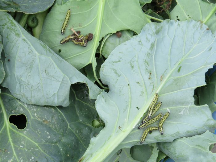 菜叶上趴伏着好多虫