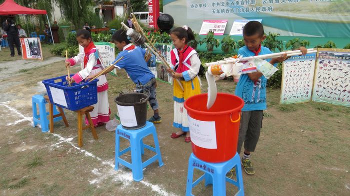 由中央文明办主办,中共云南省委宣传部,丽江市委、市政府承办的全国保护山川河流志愿服务活动启动仪式在丽江市长江第一湾石鼓镇举行。作为全国重点项目以及承担该项目活动的绿色家园和丽江市志愿者协会将走进丽江境内金沙江615公里流域范围内的社区、学校,继续深入向公众普及保护山川河流的科学环保知识,进一步深化和推进校园、社区“垃圾不落地”公共环境意识的提升和制度的建立。 启动仪式现场,面对生活和居住在金沙江畔的石鼓完小300余名师生和家长渴盼知识的眼光,绿色家园的陈永松老师通过生动形象地展示和讲解科学环保知识,使师生和家长们对垃圾不落地的环保行为倡导产生了浓厚的兴趣,现场互动和提问此起彼伏,长江第一湾上的全国保护山川河流项目启动仪式中的“小手拉大手-科学环保培训”活动,伴随着石鼓完小学生代表科学环保倡议书的宣读声开启了一个新的征程。 欲了解更多信息请同时关注丽江绿色家园微博 http://weibo.com/ljgec或博客 www.blog.sina.com.cn/ljgec  中央领导参与启动仪式  “垃圾不落地”培训过程中  一名“小专家”手中的沼气池模型  “小专家”们准确的进行垃圾分类  多家媒体采访陈永松  云南广播电视台采访  活动结束后会场遗留的垃圾被很好的分类 媒体报道: |