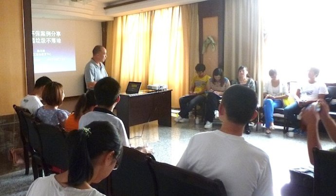 由云南省环境保护宣教中心和社区伙伴主办的社区环保培训在普洱市举行。来自昆明市、临沧市、普洱市和西双版纳州的社区代表、大学生社团学生代表、当地环保的宣教人员参加了这次为期四天的培训。培训邀请了绿色家园的陈老师与大家分享了校园垃圾不落地的经验和教训,参训人员表示将在各自所在的社区和学校倡导垃圾不落地。