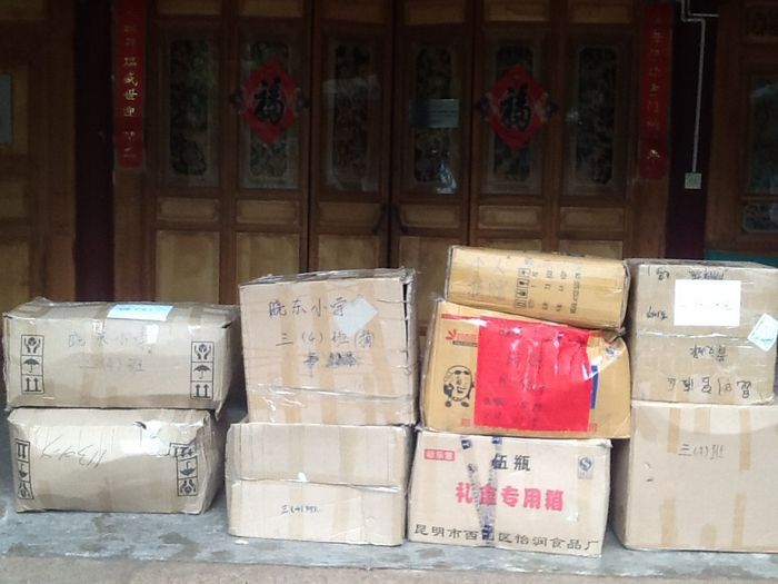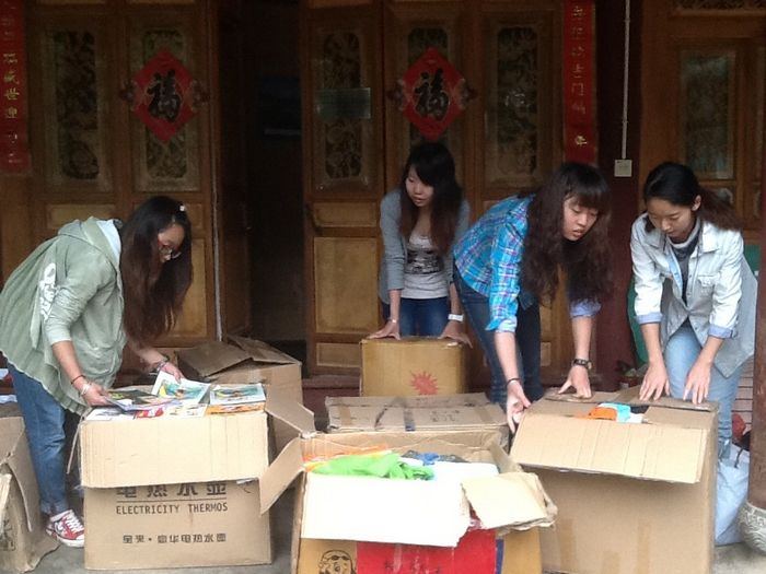 2013年7月25日,丽江绿色家园收到来自昆明市晓东小学的师生和家长们捐赠的9大箱衣物、书本及学习用品,四名来自云南财经大学的大学生志愿者及时对捐赠物资进行整理和统计。丽江绿色家园将陆续把这些爱心物品将送到需要帮助的孩子、家庭手中。欲了解更多信息请同时关注丽江绿色家园微博