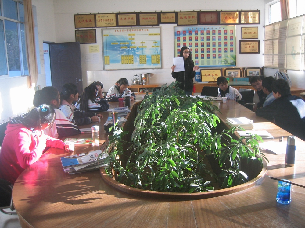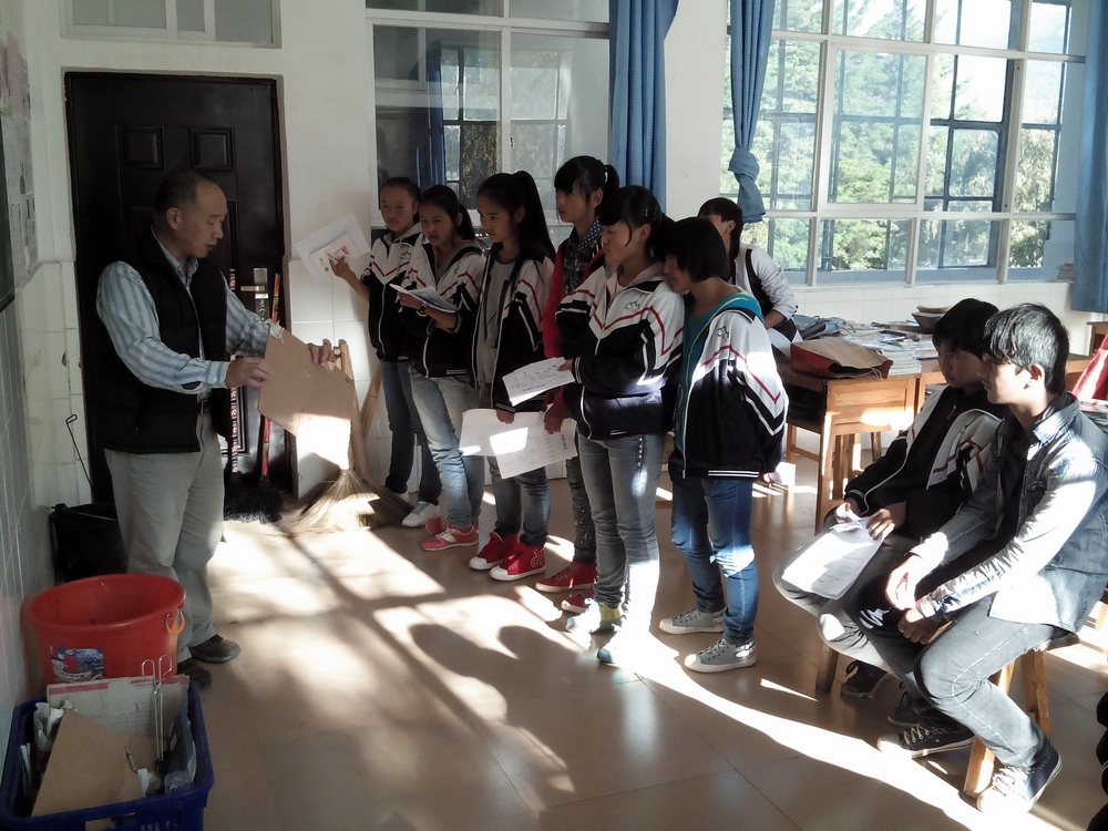 19日清晨,丽江绿色教育中心的两位老师早早地来到玉龙二中,与初一至初三负责垃圾不落地的10名班委们进行交流。会上,同学们纷纷向老师们积极展示垃圾不落地管理制度实施后取得的成果,中心的老师在肯定同学们成果的同时也提出了改进建议,并现场进行示范操作培训。最后,在中心老师的协助下,同学们一起动手对各班垃圾不落地配备设施进行整理和完善。经过一个上午的培训交流和实操,同学们表示对建设校园环境文化充满信心。