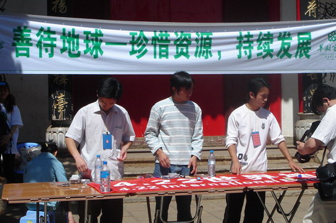 4月22日是第37个地球日,YEN配合北京地球村(GVB)发起的地球日昆明地区节能宣传活动。在YEN的组织下,来自昆明地区的8所高校的环保社团在昆明市和市翠湖公园内共同携手举办了声势浩大的节能宣誓活动,学生们在公园中心和四周向来往的市民发放节能承诺卡,宣传和讲解节能方式。此次活动得到了云南省环保局宣教中心、昆明市翠湖公园等单位的大力支持。