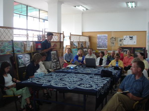 美国教师学习亚洲考察团一行19人在云南考察期间专门听取了云南生态网络和绿色流域在流域和湿地保护方面所开展的工作情况介绍。陈永松先生向他们介绍了YEN开展的“一株树志愿者”活动以及云南农村可再生能源推广项目的情况,并一一回答了客人们提出的问题。