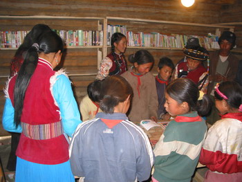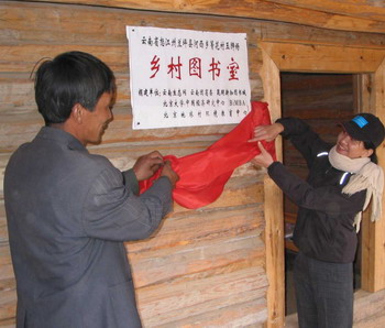 普米族村玉狮场远离县城,村民读书看书都十分困难,在YEN 的倡议下,仅用了短短的一个月的时间,玉狮场“乡村图书室”终于在普米族村民的欢笑声里挂牌开放了。昆明新知图书城捐赠了500余册图书。来自云南财大青法会、昆工环保协会、昆医环保先锋协会等9位同学志愿参与了图书整理工作。此项活动得到了北京地球村和团省委的支持。欢迎有更多人和机构加入到捐书的行列中来。联系电话:0871-5737181 电子邮件:office@yen.gno.cn  乡村图书室1  乡村图书室2  乡村图书室3  乡村图书室4  昆明新知图书城为图书室捐赠了500套丛书 |