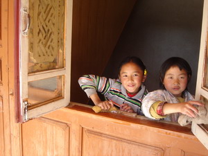 村里的小志愿者在摖窗子