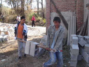 青年志愿者在清理院子