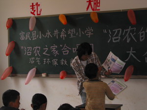 青法社和清青社的志愿者们利用五一假期来到了小水井希望小学,与当地学生一起,组织开展了丰富多彩的沼气环保农村教育实践系列活动。这些活动极具创意。