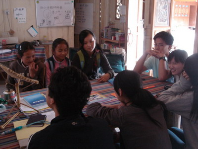 清华大学暑期社会实践支队一行5人在队长章雳郡同学带队下,于2008年7月4日抵达位于丽江市玉龙县拉市乡安上村的丽江能环科普青少年绿色家园。这是能环家园成立以来安排的第一次暑期大学生参与的农村社会实践活动。 此次活动按照以下步骤进行:1)、走访农村农户家庭,询问农户生活和孩子学习情况,了解农户使用沼气的情况,探讨帮助更多农户获得沼气的办法2)、观察拉市海高原湿地,向湿地管理局官员了解湿地管理政策和措施3)、参观拉市乡政府,与乡政府有关官员就乡村建设及其环保和旅游发展等问题进行探讨4)、到农村学校和古城中学与当地同学就学习方法和人生目标进行互勉5)、与能环家园安上村“微笑绿光”小志愿者联欢,义务给小志愿者补习功课6)、游览丽江古城。 在同学们和能环家园老师们的共同努力下,为期一周的“清华大学暑期社会实践活动”圆满拉下帷幕,这次实践活动不仅顺利完成了双方预先制定的以上活动计划内容,而且还共同制定了一份夏令营LEAP日程,达成了“制定英特网沼气推广策略”的初步意向,该意向将由清华大学暑期社会实践活动支队在本次活动结束后负责拟定。  能环家园陈老师向同学们展示沼气模型  与安上村微笑绿光小志愿者交流  在工匠村参观文化保护项目  晚上的“问疑”活动吸引了农村同学  向海东完小同学讲解学习方法  参观乡政府,与乡政府官员座谈  在丽江拉市海高原湿地管理局  玉龙民族中学高一、二班同学欢迎清华学子  我与能环家园 |