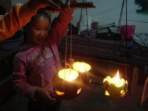 下图是安上村微笑绿光的孩子在展示她们精心制作的“火把”,即环保又节能。不一样,是吧?