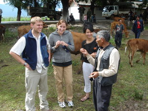 01 安上村杨师傅高兴地向美国客人介绍养牛经验