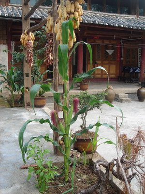 种瓜得瓜,种豆得豆--绿色家园庭院中自然生长的玉米、辣椒