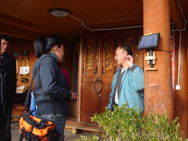 元旦初始,家园迎来了香格里拉能源站的客人,陈主任热情地向客人们介绍了家园开展农村能源宣传和推广的情况。香格里拉能源站站长对家园展示的太阳能光伏发电庭院示范灯颇感兴趣,询问了这种灯的照明和使用情况