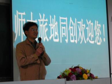 (小袁) 4月3日,“公众参与环保”系列讲座第二期在云南师范大学举办。此次活动由云南师范大学环保社团同创社承办。10多家在昆的高校的环保社团负责人、校内外师生及环保人士等约150人聆听了此次演讲。  论坛现场 这次论坛邀请到了云南生态网主任陈永松老师主讲。陈老师生动形象的为在座的听众们传授了环保的概念及进行环保工作的重要注意事项,例如在环保工作中如何捕抓环境信息,如何激励公众自愿参与环保,为各家社团开展环保活动和社团的进一步发展提供了可资参考的经验和方法。  旅地学院的王教授欢迎论坛学员 短短80分钟的演讲很快就过去了,陈老师精彩的论述为大家构建出了一个完整的环保事业运行框架,很多高校社团的负责人自感受益良多。演讲结束后同学们又与陈老师进行了热烈的互动问答,陈老师对同学们提出的问题做出了细致的解答。