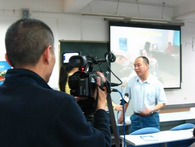 陈老师在演讲 本期讲座在高校中掀起了一股环保热潮,讲座结束后,很快就有3家环保社团热情邀请陈老师到他们学校传经送宝。  陈永松老师在接受采访 参加论坛的大学生志愿者 |