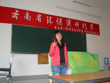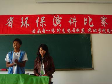 云南省一株树志愿者联盟与师大同创社在云南师范大学呈贡校区共同举办了一场别开生面的“绿世纪、彩云南”环保演讲和环保知识竞赛活动。来自昆明6所高校环保社团的环保志愿者踊跃参赛,参赛者竞相竞逐,使演讲和知识竞赛活动高潮迭起。