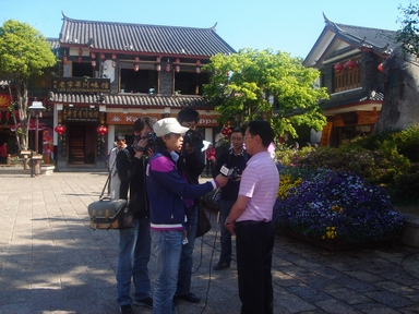 文本  环保绿叶布袋筑起了一道绿色的长城  丽江古城开展减塑活动快乐的志愿者  宿舍堆积的矿泉水瓶换环保布袋  在丽江的外国游客向志愿者要承诺卡  主办单位负责人在接受丽江电视台采访