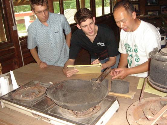 绿色家园陈老师与美国实习生们交流可再生能源展厅布局