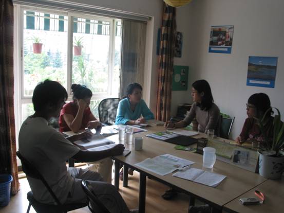 2009年7月9日上午,一株树志愿者联盟跟香港社区伙伴在民族大学图书馆办公室进行交流。联盟人员就此次下乡活动进行介绍,社区伙伴对下乡活动进行详细了解后,提出很多有创意的建议,比如如何开展活动,对项目点的选择等等。此外,社区伙伴就生态网的可再生能源项目很感兴趣,以后联盟以及可再生能源项目有机会都可以与其合作。 下午,“家”的工作人员来办公室进行交流,“家”(joyinaction简称“jia”)是一个以工作营方式组织志愿者去麻风病康复村落看望和帮助当地的麻风病康复者的组织。通过志愿者去缓减甚至改变麻风病康复者受歧视的局面以及改善他们各方面的条件。在交流中,大家觉得双方有很多资源可以整合,比如志愿者的招募、志愿者的培训和项目的持续性,双方可以运用各自的优势将其进行整合利用。  社区伙伴、家 |