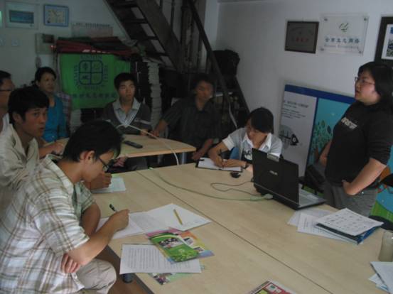 2009年7月8日下午,反哺行动的各个项目点负责人来办公室进行下乡前的交流和培训,交流会上,大家介绍了丽江、保山和建水三个项目点的相关情况。各个项目点的联系和相关的准备工作都几乎能确定下来。但相关的活动开展计划和人员分工还需要进一步确定。随后思力生态替代中心的两位老师针对农用农药和家用农药与健康做了培训,让大家对农药有了一个新的认识和了解,同时大家觉得在农村宣传农药的危害是很有必要和有意义的。这次交流和培训有利于我们更好的开展反哺行动项目。