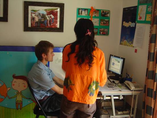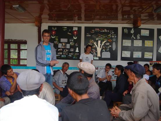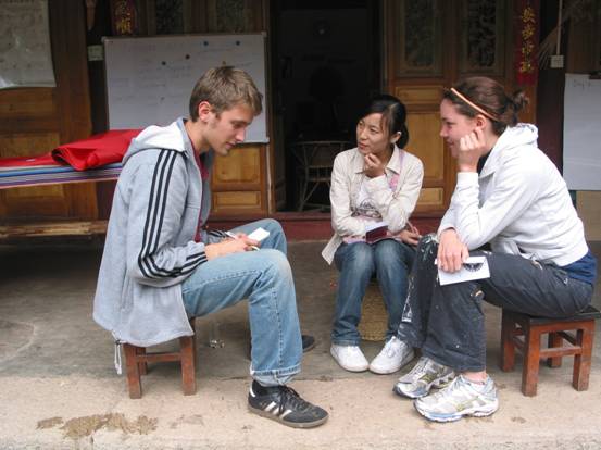 来自美国耶鲁大学、西雅图大学和美国华盛顿中学的三名实习生在绿色家园度过了一个难忘暑期。在绿色家园实习期间,三名美国实习生学习了中国农村沼气常识、了解了长江上游正在开展的系列生态保护行动情况,他们通过自己的实际行动诸如访问农户、走进农村课堂、走访湿地、编写展览解说词、制作保护标牌、编写宣传湿地保护和应用沼气实现减排宣传折页、策划和组织绿色拉市海夏令营活动来进一步加深对生态保护和减缓气候变化的理解。丽江电视台采访和报道了实习生代表,丽江市有关部门的领导和专家对实习生开展的工作给予了肯定。(供稿、责任编辑:陈永松) 家园陈老师给实习生讲解农村用能情况  来自美国三所不同学校的实习生在交流学习汉语体会(左:小马、中:克利斯、右:凯文)  要不要试一试我们的徒步登山计划?  与安上村小学一起做游戏  参与湿地一株树植树行动  与拉市西湖村村民交流沼气使用方法  体验当地农贸市场  给北京科技大学同学讲解沼气池结构  向来自昆明的陆总一行人介绍拉市海湿地保护情况  接受丽江电视台记者采访  与耶鲁校友同台表演节目  在生态网办公室实习  用沼气烧一道宫保鸡丁  与湖南大学和耶鲁大学同学交流  回答当地学校老师关于下令安排的问题  欢迎拉市完小的同学来到绿色家园  给拉市中心学校校长、湖南大学领队介绍夏令营安排计划  一起合个影吧  与夏令营小同学一起排练《感恩的心》  这身行头如何?  一览众山小----登山的喜悦  讲解夏令营小组行动注意事项  一个参观的美国中学生问凯文沼液臭不臭-凯文正在打开沼气池出料口盖板  与村民亲切交谈  专心听课  布置展板并将英文说明挂在展板上  凯文和克利斯与至善夏令营同学们交流