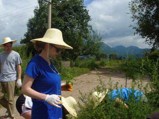 2009年8月14-19日,美国HWS大学的8位师生到绿色家园开展了为期6天的“可持续发展中国项目”的学习和调研活动。师生们在家园期间,参观学习了湿地生物多样保护图片展、学习了清除外来入侵物种的常识和方法、走访了农村、与有关村委会村干部和村民进行了交谈,学习了沼气知识。通过参观、学习、交流和动手实践,师生们对中国可持续发展进行的努力有了进一步的认识(文字、照片:刘俪波 责任编辑:陈永松)  麦教授向同学们介绍农村情况  同学们在烈日下寻找外来入侵物种  这位同学在展示她清除的牛膝菊  快乐的纳西族火把节  金黄的油菜花点缀美丽的山乡  师生们在驻足欣赏乡村自然景色  仔细品味  赶快拍张照吧  参观丽江天文台 |