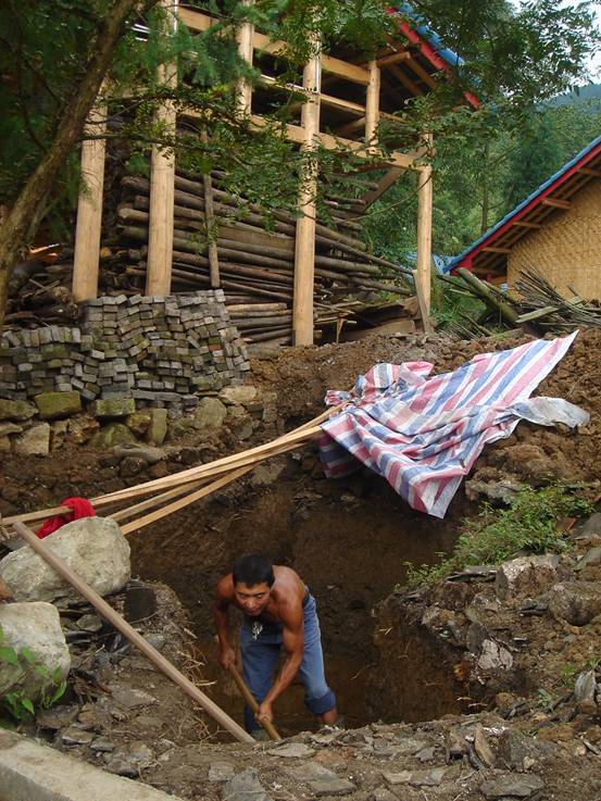 一村民在挖沼气池