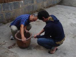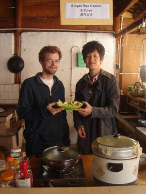 清华大学美国学者与家园志愿者一起研究沼气菜谱