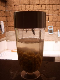 In the next step, get the beans out of the bean pod…this takes some time…and patience.  4. 几个勺豆子和水一起搅拌,搅拌器很方便。