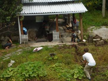 家园建设的示范沼气池在使用一年半以后,出现了沼气产气为零的状况,这对家园沼气使用和示范以及开展科普教育都产生了严重的影响。国庆长假期间,振和能源研究会的专家和工作人员放弃休息时间,与家园工作人员一道对沼气池进行了首次大清理和维护,由于丽江阴雨连绵,这次沼气维护行动持续了3天,封盖后的第二天,家园沼气压力首次达到8千帕。当我们邀请此间在此学习的美国学者一起品尝沼气火锅时,这位学者告诉在场所有人,他很想为在美国的妈妈修建一口中国沼气池。 这次行动的意义就是建设沼气的意义在于方便用户使用沼气。  开盖  清池  开沟  布管  充实  喜悦  大家一起动手