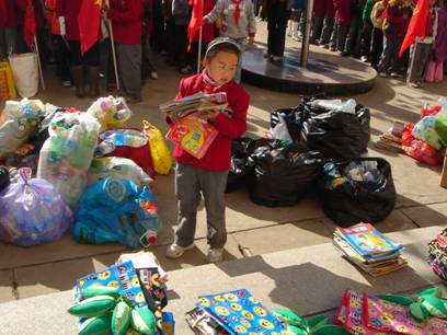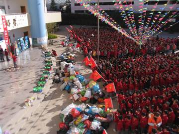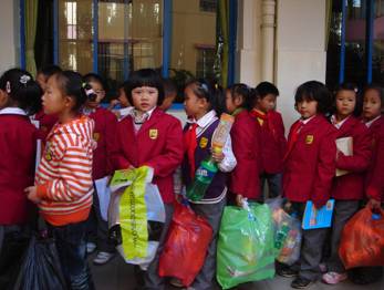 哥本哈根大会之后,低碳经济变成了一个全球的热门话题。如何才能实现低碳生活?12月25日,昆明市金康园小学的师生们就以实际行动为低碳生活做了一个精彩的诠释。在阿尔斯通基金会和云南生态网的支持下,全校师生发起回收废旧塑料包装或软包装行动,活动的主题是“垃圾减量回收低碳行动”。整个行动一次收集到了10200个废旧塑料包装或软包装。为了充分表达他们对这次活动的支持,师生们踊跃签署承诺卡并在纸片上庄严地写下了低碳减排的承诺。活动中令主办方感到惊讶的是,学校各班级同学纷纷踊跃捐赠课外图书,以表示他们对低碳行动的理解和支持,既回收了资源又支持了乡村小学图书室的建设。此次活动的主办方云南生态网受阿尔斯通基金会委托将该基金会制作的绿叶环保布袋赠送给参与活动的师生们,鼓励他们争做低碳小主人。  同学们在排队进入活动现场  云南省电视台少儿频道的记者在现场拍摄  金康园小学壮观的活动场面  每一个班级的同学都积极参与低碳行动  作为奖品的精巧别致的阿尔斯通环保绿叶袋  我们代表班级上台领取环保绿叶袋  同学们在商量如何才能实现低碳承诺  一个小的行动能让地球有很大的改变  废品回收站阿姨来运走我们的“战利品”  我们向农村的小同学捐赠书籍  我的书该放在哪儿呢?  农村的同学需要这些书籍 |