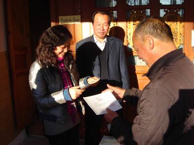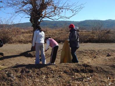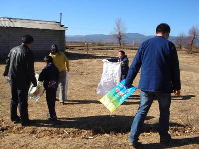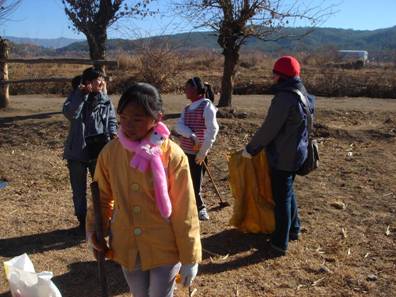 2010年新年伊始,清晨,越冬的鸟儿早已在湿地里的枝杈和水上上嬉戏吟唱,金色的太阳渐渐升上了马鞍山山顶,将温暖的阳光洒下拉市海湿地、水面,驱散了刚才还盘踞在海水上空的寒气。在这里,北京天下溪教育咨询中心和绿色家园共同举办的“我爱拉市海” 新年清海活动拉开了帷幕。沐浴着清晨的阳光,拉市海海东完小的同学们走进了绿色家园与等候在此的来自北京,哈尔滨、成都的老师们寒暄问好,他们是来参加“我爱拉市海”新年清海的学生代表。今天他们的活动内容是做老师们的湿地向导,在学习湿地保护和观鸟知识的同时,为人们和鸟儿共同的生活家园进行新年大扫除。同学们和远道而来的老师们结伴开始在湿地的草丛里寻找目标--垃圾和粪堆,不一会儿,刚刚还瘪瘪的垃圾袋和粪袋就开始鼓了起来。临近休息时,我忽然问身边的同学“你看,前边有一只鸟儿在看咱们捡马粪,见到我们它怎么不飞走呢?”同学答“它熟悉我们本地人的样子,所以它不会飞走。”这算什么回答呢。一个上午湿地捡垃圾和马粪的活动结束了,走在回家的路上,鸟儿的影子、小同学的回答一直在我的头脑里盘旋,我费力的思肘:我爱拉市海,是不是拉市海也会爱咱们?  沐浴在清晨阳光下的拉市海小学生  我们彼此交心、相互认识  我来自北京,在北京天下溪工作  我是拉市海海东完小的学生,今年读5年级了  咱们分头捡垃圾,开始行动吧!  我们一起去捡拾马粪吧  收集的马粪可以带回去投进沼气池里产生清洁能源  志愿者“清海”服务是一种荣誉  这位来自成都的妈妈对突然获得的志愿者殊荣十分自豪  来自哈尔滨一所小学校的童校长更是表示要将这份努力带回去  我们还帮助拉市安上村农民夜校建立了一个乡村图书室  绿色家园的沼气厨房温馨如家 |
