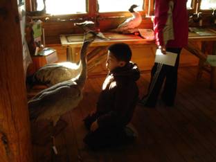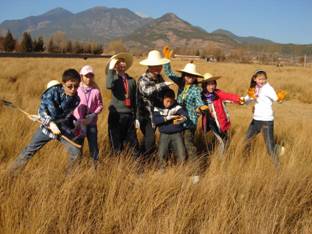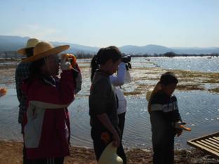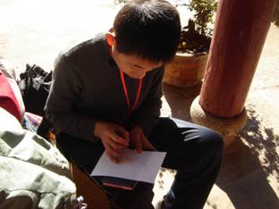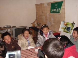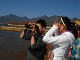 2010年2月2日至3日,继北京天下溪和上海平和中学同学拉市海低碳行之后,绿色家园又迎来了5名快乐天使,他们分别来自北京和四川成都。他们此行目的是要参与名为“拉市海环保天使行”2天的学习和环保实践活动。据带队老师说,这些孩子平时都是一些娇生惯养的城市宝贝,没有吃过苦。当5位小同学的父母将他们托付给3位成都奥德曼少儿拓展中心的老师们,孩子们在与父母告别的那一刻起仿佛变了一个人:在随后的集体生活里、无论是在吃、住、行方面,还是在参与团队活动方面他们既有独立的人格魅力,又有良好的团队互助精神。他们思维敏捷、聪颖好学,他们不怕脏、能吃苦,他们能够抛开羞怯当着其它游客的面坦然地捡拾散落在湿地里的马粪,他们通过在绿色家园的参观学习,很快地明白了拉市海之行的意义,并且变得十分投入。以下一组照片更能反映他们真实的一面。 第一组:学习拉市湿地生态保护常识  对着鸟儿思索  你们依然栩栩如生  观察与交流  展厅图书很实用  谈一谈各自的心得体会 第二组:沼气应用  别担心!我会打鸡蛋  成吧,蛋饼出来了  动作老练吧  自己动手煎的鸡蛋吃起来真香 第三组:观鸟  看湖水中的真鸟  近距离观鸟多清楚啊 第四组:和村里的叔叔、爷爷对话交流  听马锅头讲鹰的故事  听村里老爷爷讲纳西的故事 第五组:“清海”行动  带着“清海”工具准备出发  第一次体验捡马粪  咱俩合作吧  游客看着咱们捡垃圾呢 第六组:活动之余  画一张灰鹤图  给植物来一张特写吧  休息瞬间-飞翔在湿地上空  很酷吧  欣赏照片 |