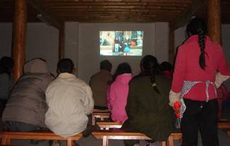 春节前夕,拉市海农村处处开始显现出节日即将临近的气氛。村民采用年猪饭的形式招待亲朋好友庆丰年。绿色家园则选择放电影给村民拜年。在村里的农民夜校里老人孩子们欢聚一堂观看电影,欢声笑语顿时驱散了腊月寒气。一个半小时的放映结束了,村民们依然沉浸在电影唤起的遥远回忆里,不情愿地说笑着离去。