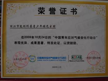 绿色家园参与了2009年10月24日由中国青年应对气候变化行动网络发起的全国性的“中国青年应对气候变化行动日”活动。有大学生志愿者、小学生、游客和社区居民共同参加的拉市海“低碳未来青年责任”“清海”活动受到了活动组织者的认可。