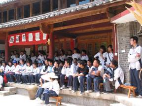 | 继丽江市古城区一中绿色家园科普行后,丽江市一中同样组织了88名高一学生到绿色家园接受低碳与生态游科普教育和社会实践活动。绿色家园总结前次的经验后,在本次的科普讲座和互动方面都有了改进,讲座结束后获得师生们和青科中心官员一致好评,学生们给本次科普教育讲座打分情况分别是满意达23%、很满意达76%、一般是1%、没有不满意的。  绿色家园低碳科普课堂 -沼气与有机废弃物实物与模型 在农舍听低碳科普常识--身临其境