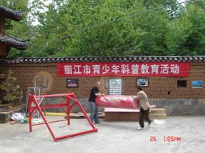 在云南师范大学太阳能研究所谢建教授陪同下,好日子太阳能热水器公司董事长考察了绿色家园,在看到绿色家园开展低碳科普教育有声有色,但展示的硬件不够时,董事长当即排版,当天就将一套可以展示、教育并且实用的太阳能热水器安装在绿色家园的院子里了。