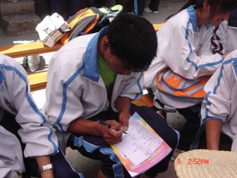 继4月15日古城区一中组织80名高一同学来家园学科普、践行低碳活动后,5月8日,丽江古城区一中再送学子赴家园学科普。此次学生总数为96人,比上一次增加了16人。据悉,古城区一中在开展青少年科普教育校外活动方面、措施积极、目标对路、很受同学们的欢迎。校园内,学校老师还专门为学生们开辟了科普教育和低碳实践活动交流园地,极大地鼓舞了学生们热爱科学,践行低碳的信心和士气。  绿色家园科普活动剪影长廊  学生们在家园围墙上的“科普活动剪影”长廊上仔细寻找熟悉的身影  沼气低碳知识深深吸引了学子们的注意力  家园里“观鸟”  都来尝试一下“沼气煎鸡蛋”  “帽帽队”的速记在认真记录“队员们”的ideas  “沼气生产队”队长在宣布他们的提出的低碳倡议 |