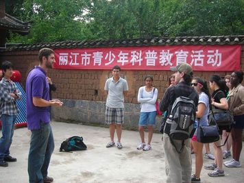 2010年6月24日上午,在“知无涯”的安排下,来自美国纽约The Brearley School的9名师生在实习生王卓的带领下参观了绿色家园。在了解拉市海湿地保护、农村沼气应用和低碳生态游三者之间的关联后,大家以植树和认养树的方式来消除碳足迹,践行低碳理念。 June 24, 2010 in the morning, as part of the “Minds Abroad” program, 9 teachers and students from New York City’s The Brearley School were lead on a tour of the GEC by EcoNetwork intern Simon Warren. After learning about Lashihai’s wetlands protection, rural biogas use, and low-carbon ecotourism, and the connection between them, everyone planted and adopted trees in an effort to lower their carbon footprint.  客人进入家园  了解沼气应用与湿地保护的关联  王卓给客人介绍沼气  实地参观沼气池  沼肥臭不臭?  我们一起来植树  给小树浇水 |