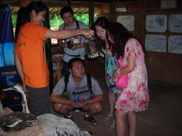 2010年7月16日,绿色家园再次迎来了消除碳足迹的低碳游客们。在家园科普人员的带领下,4位客人参观了家园的展厅及沼气实践园,客人们了解了可再生能源推广、湿地保护及低碳旅游之间的关联,全新的理念让游客们耳目一新,同时客人们对家园的工作理念表示赞同和支持,更有游客当场表示以后要来家园做志愿者。最后4位客人以认养果树的方式来消除旅行所产生的碳足迹。 16 July 2010 The GEC welcomed 4 guests from Dalian and Beijing.Under the guidance of the GEC staff, the four guests observed the GEC’s exhibition hall and biogas demonstration area, and got an understanding of renewable energy sources, wetlands conservation, low-carbon tourism, and their relationship to one another, which gave the guests a fresh point of view. At the same time, the guests thought highly of and supported the GEC’s theory and work, and even more, the guests immediately said they planned to return to the GEC to volunteer. At the end, the four guests adopted trees to offset the carbon ffotprint of their travel.  参观展厅  亲自体验低碳行动 - 施沼肥  认养树苗 |