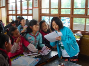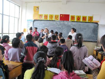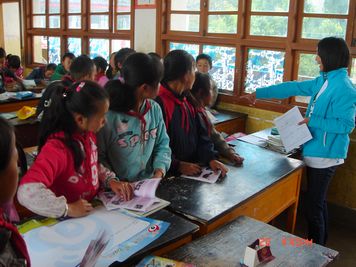 2011年19日,云南师范大学的志愿者们风尘仆仆的从昆明赶到丽江,走进拉市乡村完小开展低碳环保教育的教学活动。