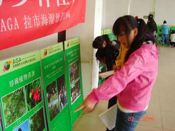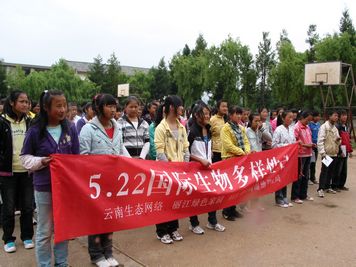 2011年5月20日下午,由云南生态网主办的生物多样性日系列宣传活动在丽江绿色家园的协调安排下,组织了拉市海湿地管理局的专家和云南一株树志愿者联盟的志愿者分别走进玉龙县二中、海东、海南和吉余拉市乡的三所完小开展了形式多样的生物多样性纪念日宣传活动。 此次系列宣传活动得到了美国大自然保护协会及亚洲绿色文化国际交流促进会的大力支持。  由生态网主办的系列宣传活动在二中  丽江玉龙县二中学生参与生物多样性宣传活动  拉市海湿地管理局的和老师介绍湿地植物  为二中学生介绍湿地外来入侵物种  通过展板学习生物多样性知识  绿色家园、湿地管理局、亚洲绿促会的相关负责人合影  为海东小学学生讲解湿地动植物保护  志愿者与孩子们