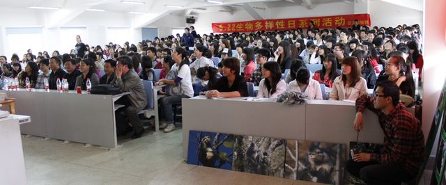 2011年5月22日下午,在丽江绿色家园的协助安排下,拉市海湿地管理局、云南生态网、亚洲绿促会的三位负责人应邀参加了云南大学旅游文化学院青年志愿者协会承办的“5.22国际生物多样性日”专题讲座的活动。