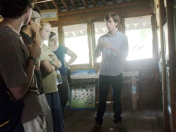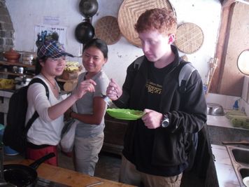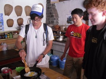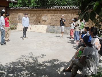 7月22日,在阳光明媚的下午绿色家园迎来了一批老朋友——龙聚中美文化交流中心的学子。在家园实习生Brendan和Jeff(王秉正)带领下对家园进行了全程参观。参观过程中,美国的学生对沼气示范表示了浓厚的兴趣,与家园的实习生进行交流,提出了许多有意义的问题与见解。在沼气厨房动手实践过程中,用沼气煎的鸡蛋被同学们分享一空。 后记:此次活动中,我们猪圈的“毛毛、红红和点点”以及小狗“多多”特别受学生欢迎,所有的到访者都与它们合影,俨然成为家园的Superstar。  欢聚家园  Brenda介绍“一株树”理念  了解农村沼气与低碳的关联  Jeff教学生用沼气煎鸡蛋  学生抢着吃鸡蛋  围观沼气池,还有我们三只可爱的沼气猪 |