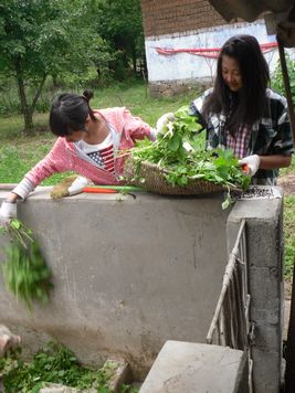 暑期已到,来自昆明师附高中的韦帆,昆十中的黄子芸两位好朋友相约结伴来到绿色家园开展了为期11天的志愿者服务活动。两位同学把志愿者精神发挥的淋漓尽致,把家园从内到外打理的条条有序,吃苦耐劳的精神让家园的工作员也钦佩不已。大家可以通过以下的图片了解下,这两位同学在家园都干了些什么?  与国外实习生一起做翻译  清理家园菜园  每天中午割草喂沼气猪  给家园的土鸡准备“午饭”  打沼液1  打沼液2 以上就是两位同学在家园的表现,部分虽然图片并不尽然,相信大家还是能看的出来,两位同学在家园做了许多有意义的事,我们欢迎越来越多这样的志愿者到家园。 |