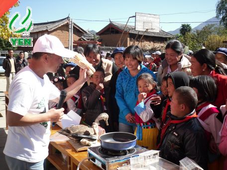 由云南生态网绿色教育中心组织的“科学环保进乡村”系列活动得到了全球环境基金(GEF)和丽江市环保局的大力支持,经过一个多月的前期准备,11月至12月将在丽江玉龙县的五个乡镇:拉市乡、太安乡、九河乡、石头乡和石鼓镇进行16个主题的公共意识宣传活动。 2011年11月10日,在拉市乡的海南完小进行了首场宣传活动,活动有小学生、在校老师及社区村民三百多人参加。海南完小的168名学生“以小手拉大手”的方式带领家长积极参与活动,丽江市环保局、玉龙县团委、拉市乡政府以及拉市乡海南村委书记等嘉宾代表也到场支持。 活动以“我爱拉市海”环保剧表演拉开了序幕,活动的一大特色是现场启动了“3R垃圾会诊医院”,由环保“医生”专家引导学生和家长进入垃圾“减量科”、“沼气科”和“重症科”,讲解如何进行垃圾分类、如何处理有害垃圾以及如何达到垃圾减量的办法和对环境的影响,同时学生、家长与讲解员的互动,参与者提出了各自生活中对垃圾处理存在的问题和意见。此外,活动中精彩的环保节目穿插表演也获得了活动参与者的阵阵掌声和笑声。新颖独特的环保活动内容受到了学生、老师和家长的好评。  宣传活动现场  活动得到各级政府部门的支持  环保剧“我爱拉市海”采用本地方言纳西话表演,让乡村老百姓都能看得懂  科学环保宣传系列活动走进拉市乡海南完小  全神贯注观看环保剧  小手拉大手,一起学环保  小手拉大手,一起了解沼气对环境保护的作用  看看垃圾如何分类变资源!  宣读环保行动倡议书  与社区村民互动座谈  绿色家园献爱心,为社区老人冬季送温暖  哈哈,我们大合影 |