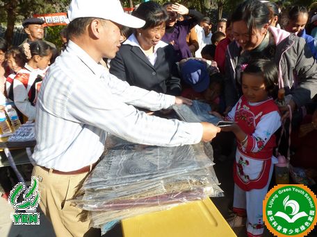 2011年11月24日下午,生态网绿色教育中心的老师们在结束了玉龙四中的宣传活动后又马不停蹄的到了石鼓镇的大同完小(八一希望小学),活动现场得到了当地村民的帮忙,他们主动来帮助我们挂展板、拉布标布置会场。这次的小手拉大手活动表现得最棒:三个学生家长与孩子同大家分享了各自的垃圾分类经验和家庭环保教育,让参与者受益匪浅。活动中学校协助组织的节目表演也让学生的家长看到孩子们如何在学校快乐的学习和成长。  村民主动来帮忙  社区里的村民都赶来参加活动  科学环保走进石鼓镇  活动现场  现场讲解沼气池对环境保护的作用  节目表演前  活动中纳西打跳表演  小手拉大手表演家庭环保教育  学生与家长一起宣读环保倡议  我们温暖的礼物送给乡村白族小朋友  学校里还有藏族小朋友  学校最多的还是纳西族的小朋友 |