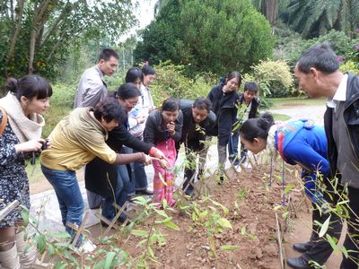 由云南省科学技术厅举办的“2011年省级科普教育基地科普管理人员培训班”于2011年12月28日在西双版纳景洪市举行。此次培训安排了专题授课、政策法规解读、交流讨论以及考擦中科院西双版纳植物园等内容,对参训学员做好科普基地展馆管理、自主灵活地开展形式多样的科普活动深有启发。陈永松先生代表云南生态网绿色教育中心参加了这次培训。培训结束后,陈先生走访了西双版纳科技局,并就科普教育和跨地域开展科普教育合作与该局有关人员进行了友好交流。12月31日,陈先生前往位于勐腊县勐伦镇曼敢村,参观了该村由西双版纳州环保局牵头实施的的“南蚌生胶片加工废水处理示范工程”。  授课专家:广东科学中心张涌林  参训学员在热带植物园内认真观察植物  简洁明了的植物指示牌  科普讲解人员用歌声来说明植物特点吸引了参训学员的注意力  热带植物园导游图 |