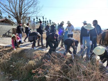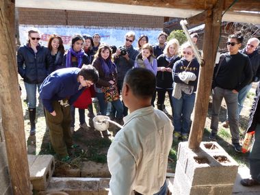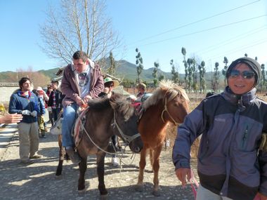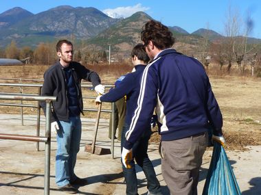 | 当大多数人还沉寂在春节喜庆的假日里,云南生态网绿色教育中心的科普环保工作者早已在年后的第二天就回到了工作岗位。为了迎接北京中国学的美国师生,中心老师精心准备了一堂的低碳知识的科普讲座。1月27日,当71名美国师生走进教育中心纳西大院,很快就被周围布置的展板、讲课模型和动植物标本吸引住了。中心主任陈永松老师向师生们讲解了垃圾、废弃物如何转变成低碳资源的科普知识、方法和技术,展示了低碳生活和低碳旅游的途径,讲座中互动问答美国师生踊跃参与。随后,师生们积极参加了拉市海捡拾马粪、捡拾垃圾以及骑马低碳的旅游体验。  教育中心讲座现场准备的教学用具  科普讲解员正在示范点燃沼气饭煲  讲座中将展板和模型移近学习者  一名学生在讲座中认真看展板的内容  在沼气厨房外围观沼气燃烧的师生们  闻一闻沼肥的气味需要勇气,这名美国学生正在全心体验  师生们来到湿地骑马场开始捡拾垃圾的活动中  烈日下一名学生边捡垃圾,边欣赏拉市海秀色风光  这位女同学很快就捡满了一袋垃圾  捡拾马粪小组的同学们在用编织袋装马粪  这位美国老师正在专心撮马粪  骑马将给马锅头和学生带来低碳思索-图为牵马的马锅头面对镜头开心一笑
