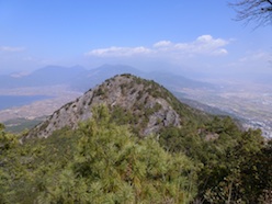 马鞍山北山峰和左侧的拉市海、右侧的丽江城区